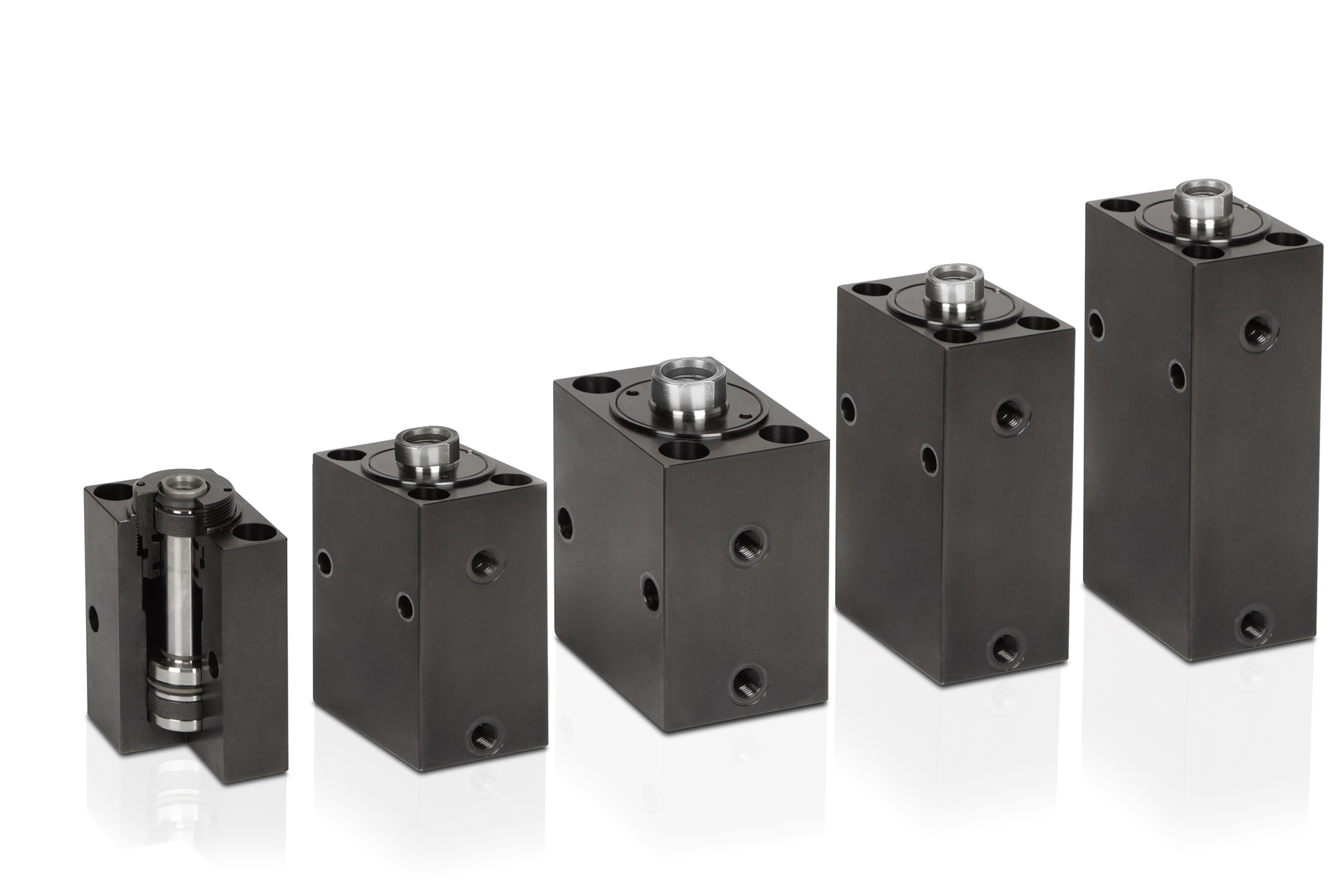 Five designs: different piston diameters, strokes, sealing systems